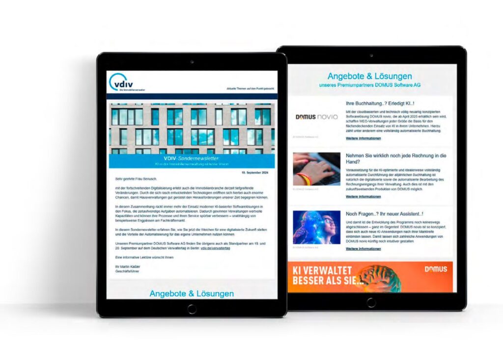 Mit einem Sondernewsletter platzieren Sie Ihre Botschaften alleinig und zielgerichtet an Immobilienverwaltungen bundesweit.